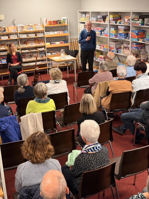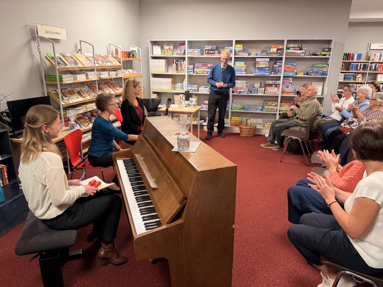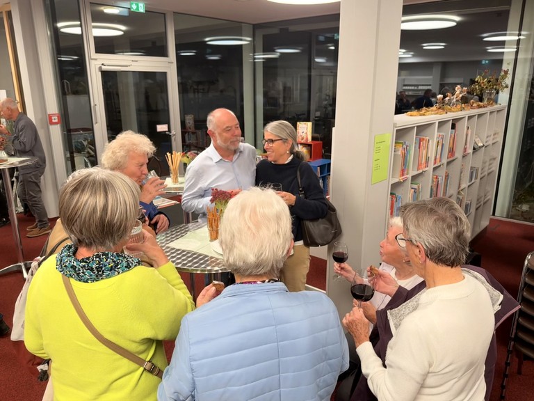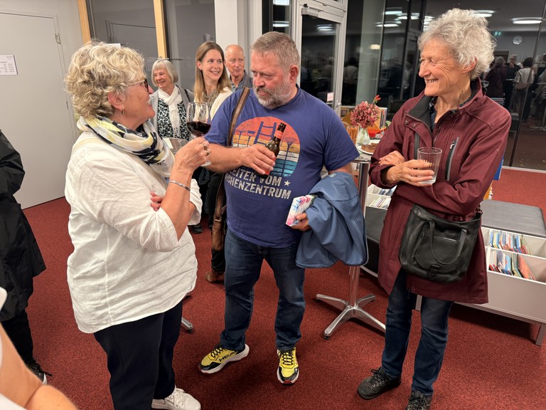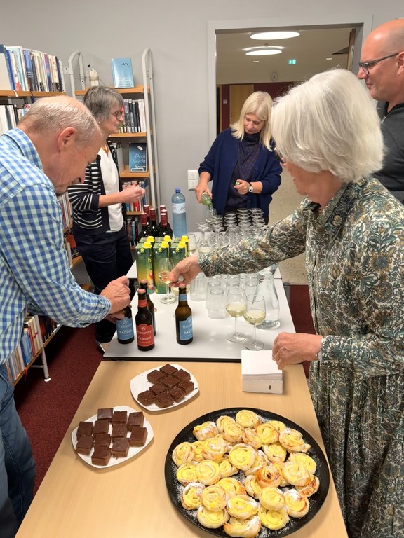Das zahlreich erschienene Publikum zeigte sich begeistert von der Mischung aus humorvollen Anekdoten, tiefsinnigen Impulsen und musikalischen Zwischentönen. Im Anschluss an die Lesung blieb man noch gerne beisammen – bei einem Gläschen und kleinen Knabbereien wurde angeregt weiterdiskutiert, gelacht und ausgetauscht.