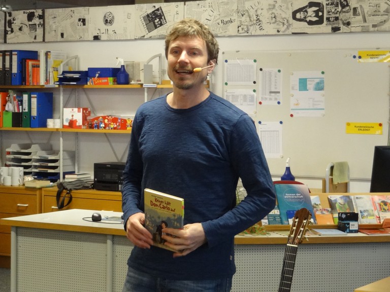 Die Viertklässler der VS Sulz und die Schüler/innen der VS Viktorsberg durften am 11. März 2019 an einer besonderen Lesereise teilnehmen: Oliver Scherz entführte die Mädchen und Buben auf eine spannende Reise von Deutschland bis in den Süden Italiens. In Gedanken konnten die Kinder die Hauptfigur des Buches „Keiner hält Don Carlo auf“ auf der abenteuerlichen Suche nach dessen Vater begleiten. Oliver Scherz bereicherte die Lesereise mit tollen Liedern, die er auf seiner Gitarre begleitete. Am Schluss warteten die begeisterten Zuhörer/innen schon ungeduldig auf die „Autogrammstunde“. Noch lange werden wir alle gerne an dieses unterhaltsame Leseerlebnis denken!