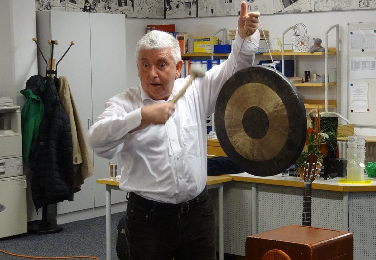 Für die 3. und 4.Klassen der Volksschule Röthis trug der Autor seine lustigen Lautmalgedichte vor. Mit Hilfe zahlreicher Instrumente brachte er die Mädchen und Buben zum Staunen, Mitmachen, Mitreimen, Mitraten und Mitklatschen. Alles in allem ein schwungvoller und anregender Beginn einer Woche, die zum Lesen animieren soll.