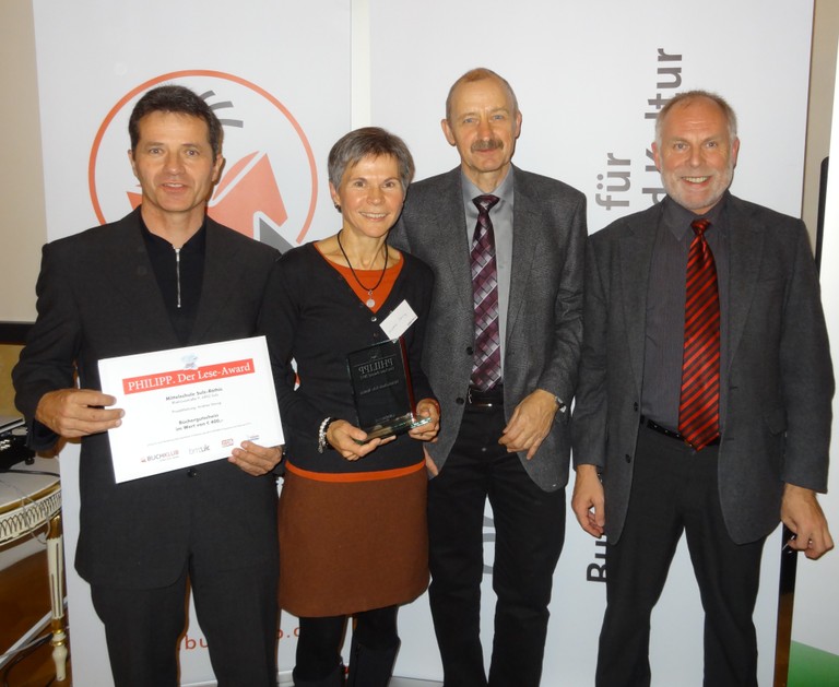 Beim Leseförderprojekt „Topp, die Lesewette gilt“ der Mittelschule Sulz-Röthis galt es, das Körpergewicht der DeutschlehrerInnen der Schule durch das Gewicht der von allen SchülerInnen gelesenen Bücher zu übertreffen. Im Zentrum des Projektes stand die Förderung der Lesemotivation, was von unserer Bücherei mit mehreren Aktivitäten unterstützt wurde. Unter anderem wurden die Buchwünsche der SchülerInnen verstärkt berücksichtigt. Zudem besuchte eine Klasse der Mittelschule mit ihrer Lehrerin Andrea Stonig und Büchereileiter Hartwig Stonig die Buchhandlung Ananas in Dornbirn und suchte dort neue Bücher für die Bücherei aus. Zu den ausgewählten Büchern bastelten die SchülerInnen „Buchtheater-Schachteln“, um so auf eine anschauliche und unterhaltsame Art und Weise Buchtipps zu vermitteln… Dieses Projekt wurde vom Buchclub als das beste Leseprojekt Österreichs der Kategorie Sekundarstufe I und II ausgewählt und mit dem Lese-Award prämiert.
