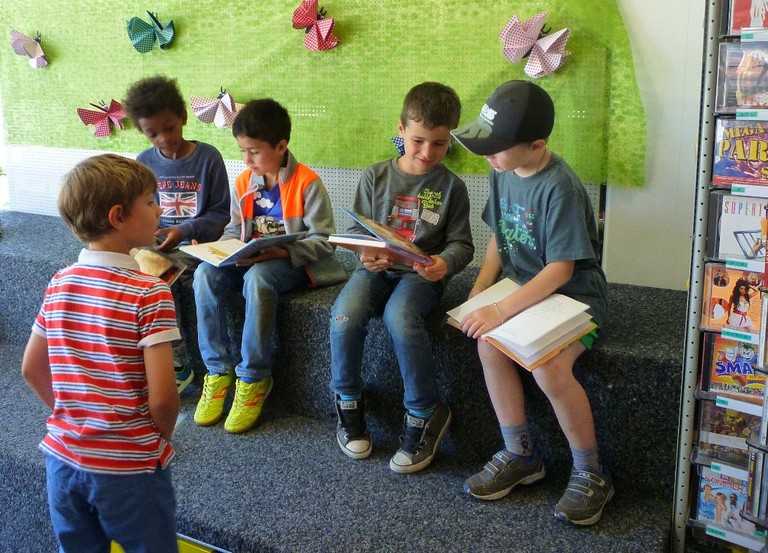 In der letzten Maiwoche besuchten fünf Volksschulklassen unsere Bücherei. Betreut wurden sie von Sabine Mathies und Hartwig Stonig. Auf dem Programm standen eine Bilderbuchpräsentation und die Erkundung der Bücherei. Anschließend vertieften sich die Kinder in ihre Lieblingsbücher, die sie im Anschluss ausleihen konnten, oder lernten verschiedene Spiele kennen.