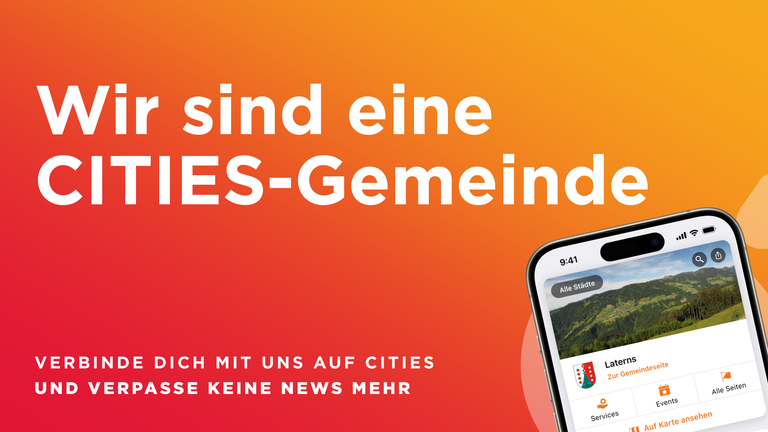 Wir wollen für Sie unseren Bürgerservice so effizient & bequem wie möglich gestalten. Daher nutzen wir als Gemeinde Laterns CITIES als zentrale Informationsplattform sowohl für unsere als auch für Ihre Belange.