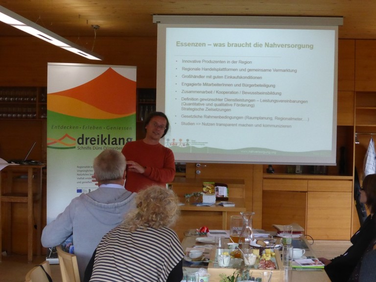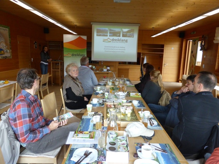 Die LEADER-Region Hesselberg aus Deutschland (Bayern) besuchte uns am 7. Oktober 2015. Zu Beginn fand in unserer Geschäftsstelle ein reger Austausch zu Inhalten und Zielen in beiden Regionen statt. Mögliche Themen für eine grenzübergreifende Zusammenarbeit wurden angedacht. Anschließend ging es zur Sennerei Schnifis. Dort stellte uns die Geschäftsführerin von "Dreiklang", Monika Raggl, das Projekt Dreiklang vor. Ebenfalls sehr interessante Informationen zum Projekt "Nahversorgung Aktiv" bekamen wir von Karl-Heinz Marent (Geschäftsführer des Vereins Dörfliche Lebensqualität und Nahversorgung). Nach dieser theoretischen Einführung konnten wir den Nahversorgerladen in Düns hautnah erleben. Den Abschluss der Exkursion bildete ein Rundgang durch den Permakulturgarten von Armin Rauch in Dünserberg. Armin Rauch erklärte uns wie Landwirtschaft nachhaltig, ökologisch und erfolgreich umgesetzt werden kann. Die ein oder andere Kostprobe aus seinem Garten bestätigte seinen Erfolg.