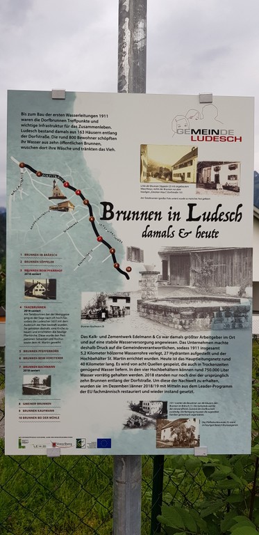 Am 15. Juni 2019 feierte die Gemeinde Ludesch die erfolgreiche Sanierung der drei noch erhaltenen Dorfbrunnen. Ursprünglich gab es in Ludesch zehn solcher Brunnen, die in der Geschichte Ludeschs eine wichtige Rolle spielten, bis im Jahr 1911 die ersten Wasserleitungen im Ort gebaut wurden. Die Dorfbrunnen waren nicht nur wichtige Infrastruktur, sondern auch soziale Treffpunkte. Mit der Unterstützung durch LEADER konnte sichergestellt werden, dass diese Kulturgüter erhalten bleiben. Zudem gibt eine Infotafel am Tanzbrunnen einen kurzen Überblick über die Geschichte der Wasserversorgung in Ludesch.