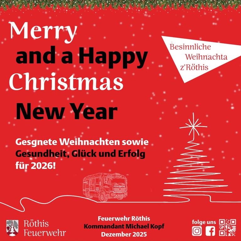 in dieser besinnlichen Zeit wünscht die Ortsfeuerwehr Röthis euch allen ein frohes und friedvolles Weihnachtsfest. Möge das Fest der Liebe euch erholsame Tage im Kreise der Familie bringen und das neue Jahr Gesundheit, Glück und viel Freude.