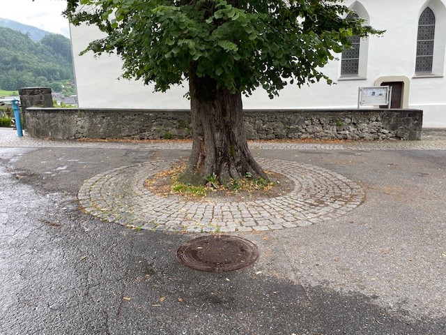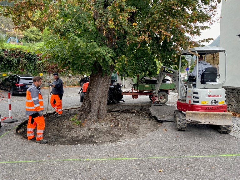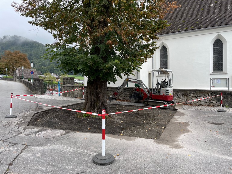 Mit Schaufeln und Minibagger wurde durch den Verein Bodenfreiheit in Kooperation mit dem Bauhof der Gemeinde Klaus, dem ground:breaking-Projekt der CIPRA und der KLAR! Region Vorderland-Feldkirch in Klaus eine Asphaltfläche rund um einen Straßenbaum geöffnet. Was auf den ersten Blick nach wenig aussieht, hat spürbare Wirkung: Der Boden kann wieder atmen, Regen versickert vor Ort und der Baum gewinnt den Lebensraum zurück, den er braucht.